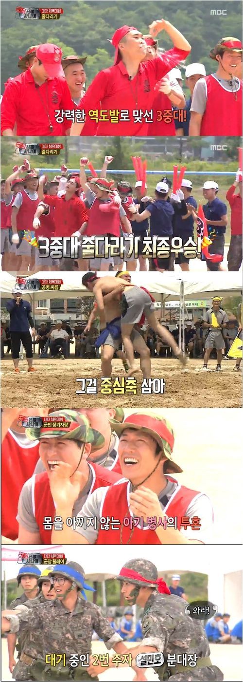 28일 방송된 MBC 예능프로그램 ‘일밤-진짜 사나이’는 흑곰 1중대, 백호 2중대, ‘진짜 사나이’ 멤버들이 배치된 독수리 3중대, 악어 본부중대 등 청룡대대원들이 체육대회를 하는 모습이 그려졌다.