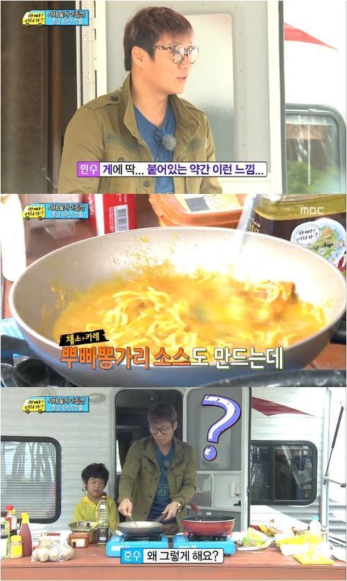 평소 '아빠 어디가'에서 요리사 뺨치는 솜씨를 자랑했던 윤민수는 이날 방송에서 꽃게를 기름에 튀긴 후 이를 카레와 섞어 맛있는 윤민수 뿌빠뽕가리로 변신시키는 마술(?)을 자랑했다.