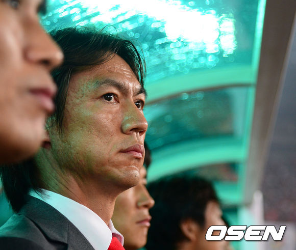 [OSNE=잠실, 곽영래 기자] 28일 오후 서울 잠실종합운동장에서 열린 2013 동아시안컵 축구선수권대회 한국과 일본의 경기 한국 홍명보 감독이 그라운드를 바라보고 있다.