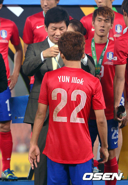 경기 종료 후 진행된 시상식에서 대한축구협회 정몽규 회장이 3위를 차지한 한국 윤일록에게 메달을 전달하고 있다./youngrae@osen.co.kr