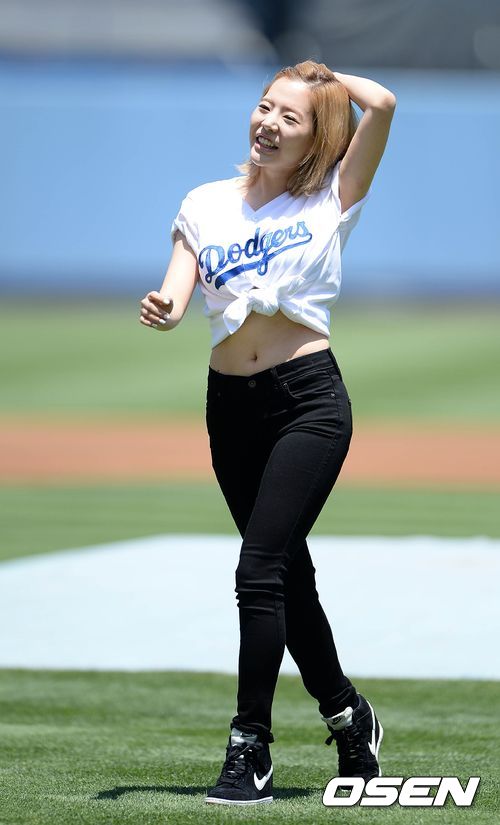 29일(이하 한국시간) 미국 캘리포니아주 로스앤젤레스 다저스타디움에서 열린 2013 메이저리그 LA 다저스와 신시내티 레즈의 경기, 경기에 앞서 시구를 마친 소녀시대 써니가 환하게 미소짓고 있다.