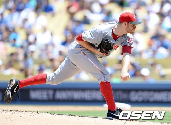29일(이하 한국시간) 미국 캘리포니아주 로스앤젤레스 다저스타디움에서 열린 2013 메이저리그 LA 다저스와 신시내티 레즈의 경기, 1회말 무사에서 신시내티 선발투수 싱그라니가 힘차게 공을 던지고 있다.
