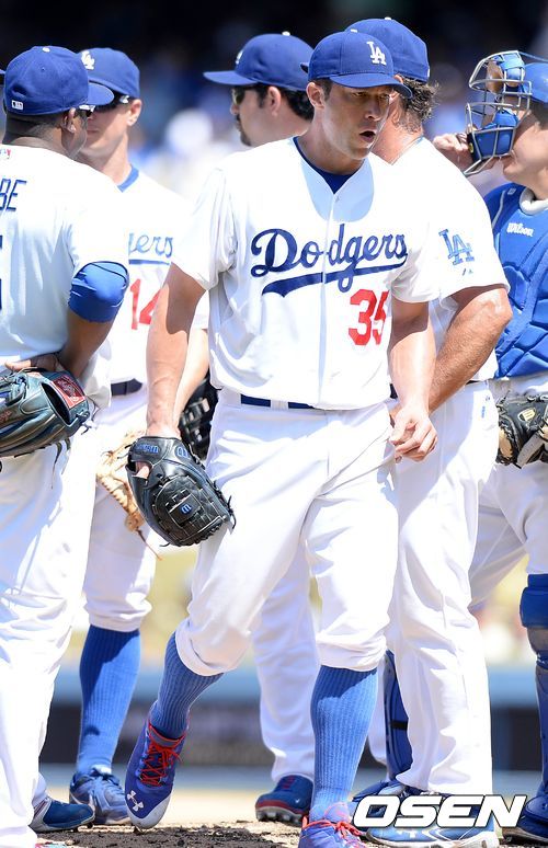 29일(이하 한국시간) 미국 캘리포니아주 로스앤젤레스 다저스타디움에서 열린 2013 메이저리그 LA 다저스와 신시내티 레즈의 경기, 7회초 2사 2루에서 LA 카푸아노가 마운드를 내려가고 있다.