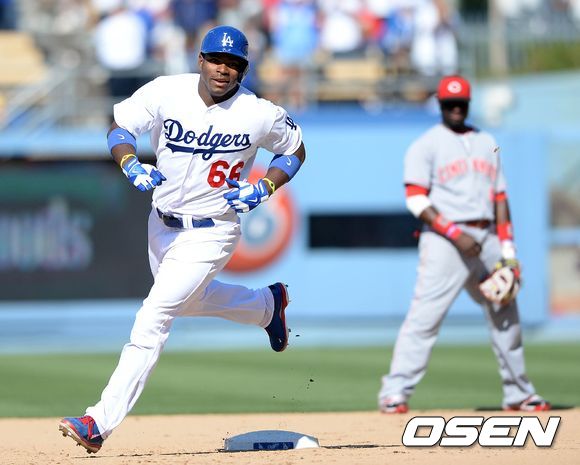 11회말 2사에서 LA 푸이그가 끝내기 홈런을 치고 그라운드를 돌고 있다./sunday@osen.co.kr