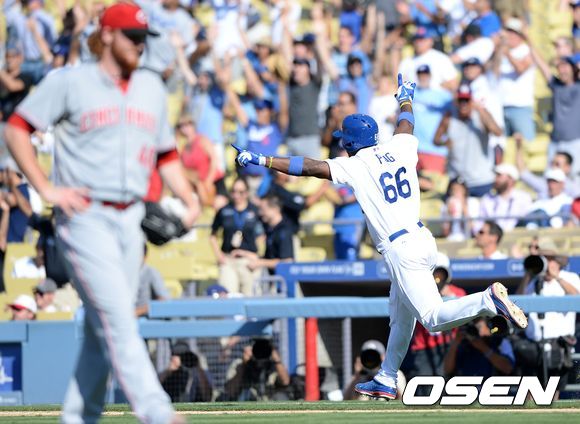 11회말 2사에서 LA 푸이그가 끝내기 홈런을 치고 환호하며 그라운드를 돌고 있다. /sunday@osen.co.kr