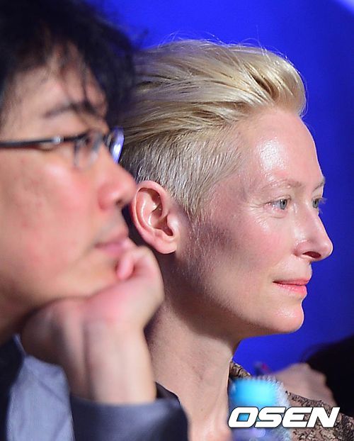 할리우드 배우 틸다 스윈튼과 봉준호 감독이 29일 오전 서울 여의도 콘래드호텔에서 열린 영화 '설국열차'(감독 봉준호) 공식기자회견에 참석해 취재진의 질문을 듣고 있다.