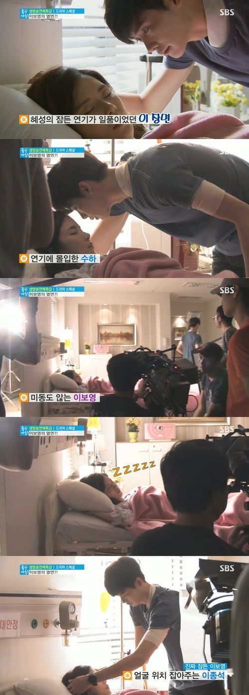 그런데 이종석의 연기가 끝나고 감독의 커트 사인이 떨어졌는데도 이보영은 미동도 하지 않았다. 이보영이 잠들어 있는 연기를 하다 실제로 깊은 잠에 빠진 것.