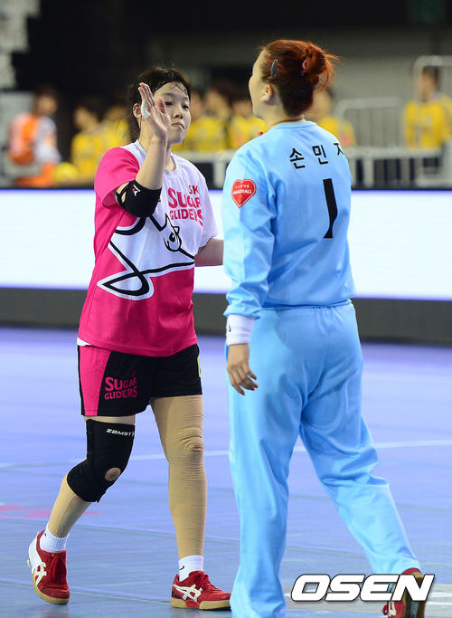 29일 오후 서울 방이동 SK핸드볼경기장에서 '2013 SK 핸드볼 코리아리그' 여자부 SK 슈가글라이더즈와 경남개발공사의 경기가 열렸다.