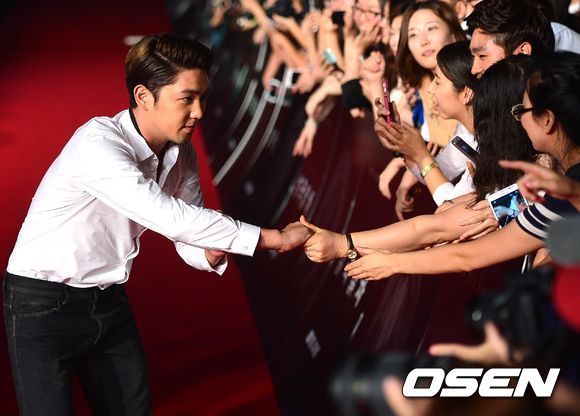 그룹 슈퍼주니어 강인이 29일 오후 서울 영등포 타임스퀘어에서 진행된 영화 '설국열차'(감독 봉준호) 월드프리미어 & 레드카펫 행사에 참석해 팬들과의 만남을 갖고 있다.