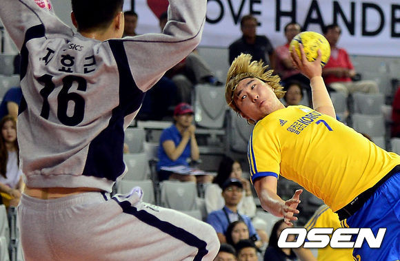 29일 오후 서울 방이동 SK핸드볼경기장에서 '2013 SK 핸드볼 코리아리그' 남자부 웰컴론과 상무 피닉스의 경기가 열렸다.