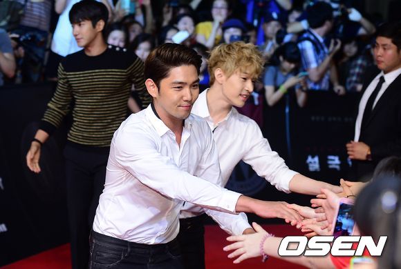 슈퍼주니어가 레드카펫을 밟고 있다.