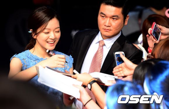 배우 고아성이 팬들에게 사인을 해주며 레드카펫을 밟고 있다.