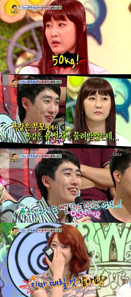 마른 자신의 체형이 가장 이상적이라며 170cm에 48kg의 마른 몸매를 가진 누나를 돼지라고 놀리는 남동생이 등장했다.