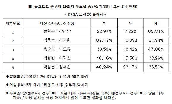 KPGA 보성CC 클래식 1라운드 대상 골프 승무패 19회차 중간집계 결과
