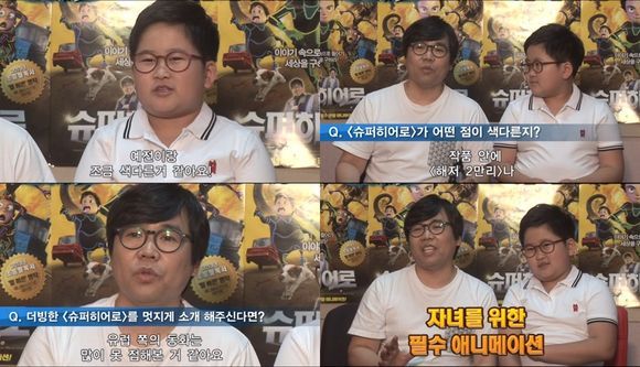 또 "지웅이는 평소 책을 많이 읽는데 유럽동화는 사실 많이 접해보지 못한 것 같다. 그런데 '슈퍼히어로'는 어린이들이 봐야 될 필독서 쥘 베른의 소설들이 많이 녹아있어서 영화를 보고 나서 그 속에 등장했던 소설들으 어린이들이 많이 찾아 보지 않을까 한다. 그래서 아이들한테 꼭 추천해주고 싶은 애니메이션이다"라고 평해 작품에 대한 기대감을 한껏 고조시켰다.