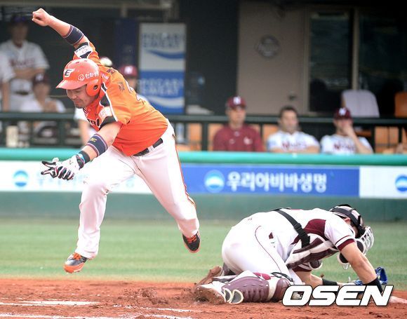 박동원은 30일 목동구장에서 열린 '2013 한국야쿠르트 세븐 프로야구' 한화 이글스전에 포수로 선발 출장해 1회초 수비 도중 홈으로 뛰어오던 김태완과 부딪혔다.