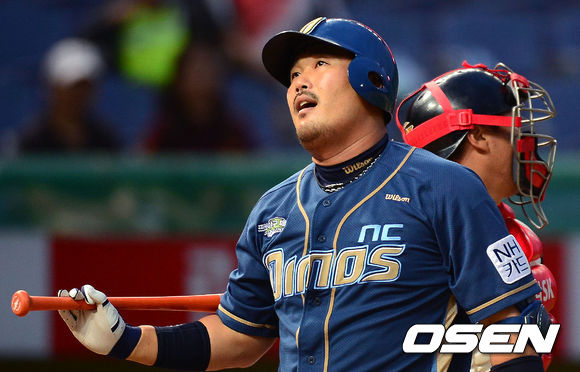 30일 오후 인천 문학구장에서 열린 '2013 한국야쿠르트 세븐 프로야구' SK 와이번스와 NC 다이노스의 경기, 4회초 무사 NC 이호준이 포수 스트라이크 낫아웃으로 물러 난 뒤 아쉬워하고 있다.