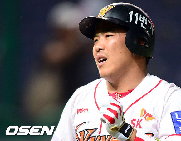 30일 오후 인천 문학구장에서 열린 '2013 한국야쿠르트 세븐 프로야구' SK 와이번스와 NC 다이노스의 경기, 7회말 1사 1,2루 SK 정근우가 자신의 타구가 담장 앞에서 잡혀 아쉬워하고 있다.