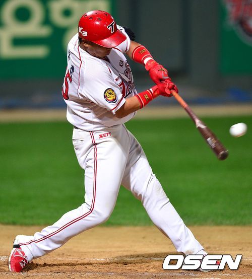 6회말 KIA 공격 2사 주자없는 상황 5번타자 이범호가 좌전 안타를 날리고 있다. 현재 3타수 3안타.