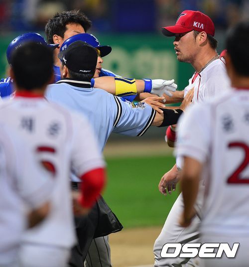 '김진우-박한이 몸쪽 공에 촉발된 벤치클리어링'