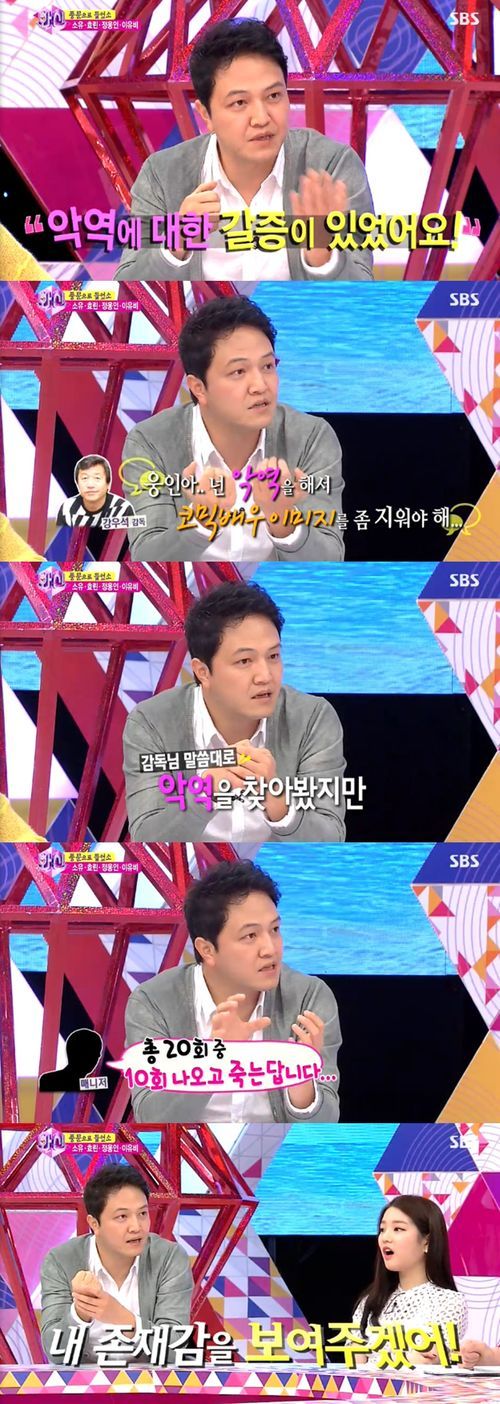 이어 "그런 상황에서 강우석 감독님이 악역을 해서 코믹 이미지를 희석시킬 필요가 있다고 해서 매니저에게 지시해서 악역을 찾아봤는데 내가 코믹 이미지가 강해서 대부분 거절 당했다. 그래서 작품을 기다리다가 포기했다"고 전했다.