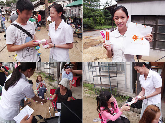 경수진은 최근 자신이 광고 모델로 활동하고 있는 화장품 브랜드의 선크림을 촬영장에 한가득 챙겨와 모든 스태프들을 일일이 찾아 다니며 하나씩 선물했다. 감사의 인사를 건네는 것도 잊지 않았다.