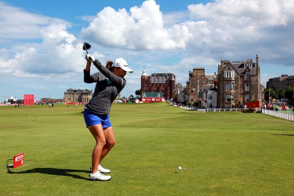 [OSEN=스포츠부] 크리스티 커가 브리티시 오픈 프로암 경기 중 18번홀에서 티샷을 날리고 있다.