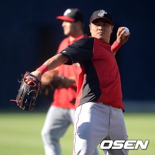 31일(이하 한국시간) 미국 캘리포니아주 샌디에이고 펫코파크에서 열린 2013 메이저리그 샌디에이고 파드리스와 신시내티 레즈의 경기, 경기에 앞서 신시내티 추신수가 훈련을 하고 있다.