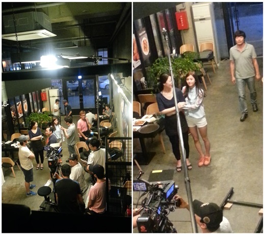 개그맨 허경환은 31일 자신의 트위터에 '상어'에 출연하고 있는 배우 남보라와 박원상, 소희정과 스태프들이 분주히 움직이고 있는 사진을 공개했다.