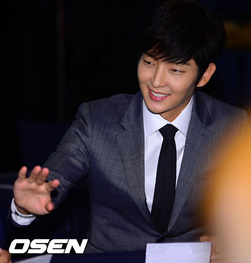 31일 오후 서울 논현동 컨벤션헤리츠에서 진행된 MBC 새 수목드라마 '투윅스'(극본 소현경 연출 손형석, 최정규) 제작발표회에서 배우 이준기가 아역배우에게 인사를 하고 있다