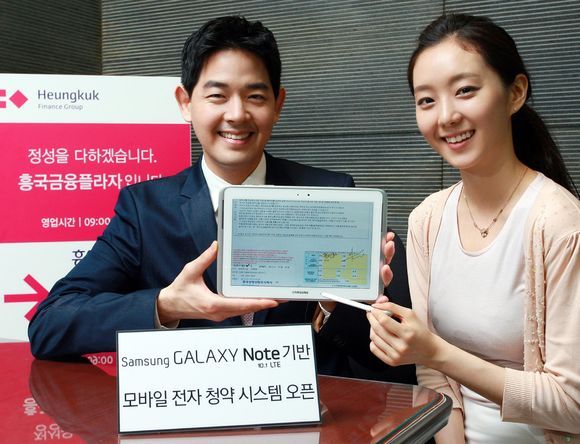 흥국생명은 모바일 전자 청약 시스템 오픈에 맞춰 '갤럭시 노트 10.1 LTE'를 보험설계사들에게 제공할 예정이다.