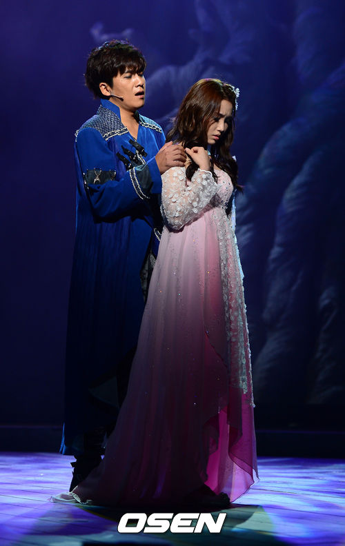 31일 오후 홍익대 대학로아트센터 대극장에서 열린 뮤지컬 '미스터 온조' 프레스콜에서 홍경민과 박세미가 멋진 무대를 선보이고 있다.