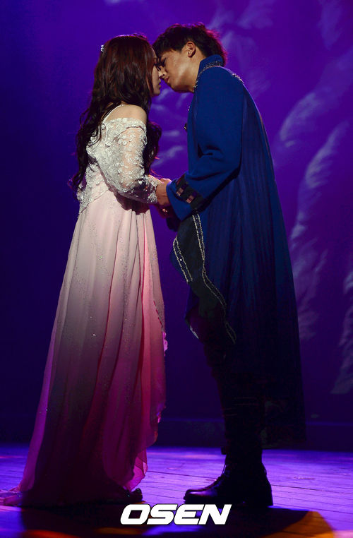 31일 오후 홍익대 대학로아트센터 대극장에서 열린 뮤지컬 '미스터 온조' 프레스콜에서 홍경민과 박세미가 멋진 무대를 선보이고 있다.