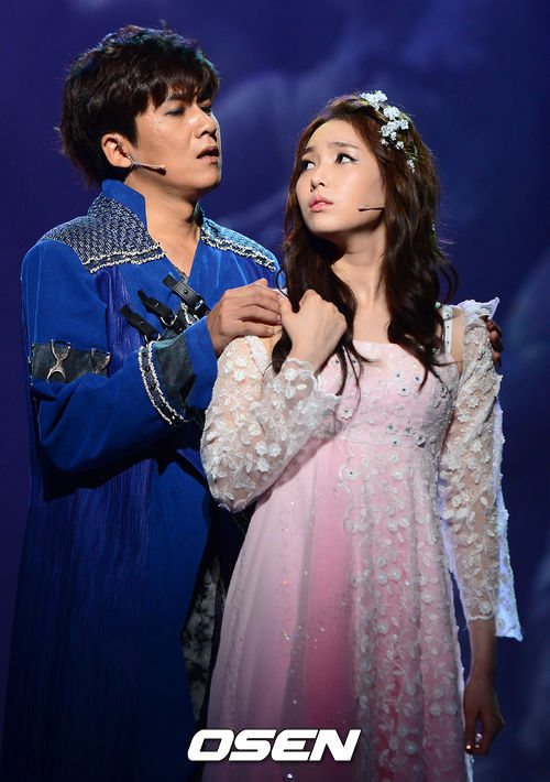 31일 오후 홍익대 대학로아트센터 대극장에서 열린 뮤지컬 '미스터 온조' 프레스콜에서 홍경민과 박세미가 멋진 무대를 선보이고 있다.
