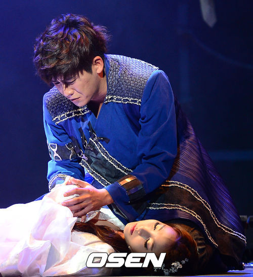 31일 오후 홍익대 대학로아트센터 대극장에서 열린 뮤지컬 '미스터 온조' 프레스콜에서 홍경민과 박세미가 멋진 무대를 선보이고 있다.