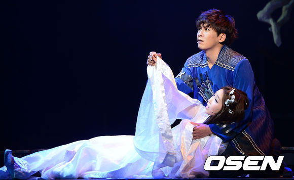 31일 오후 홍익대 대학로아트센터 대극장에서 열린 뮤지컬 '미스터 온조' 프레스콜에서 홍경민과 박세미가 멋진 무대를 선보이고 있다.