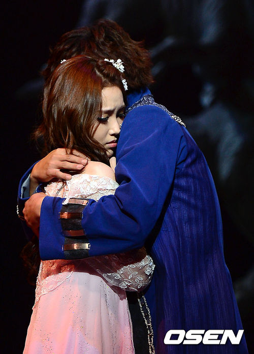 31일 오후 홍익대 대학로아트센터 대극장에서 열린 뮤지컬 '미스터 온조' 프레스콜에서 홍경민과 박세미가 멋진 무대를 선보이고 있다.