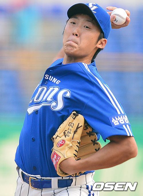 삼성 선발 배영수가 힘차게 공을 뿌리고 있다.