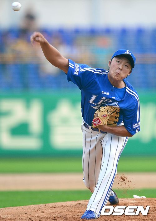 삼성 선발 배영수가 힘차게 공을 뿌리고 있다.