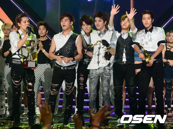 31일 오후 서울 광장동 유니클로 악스홀에서 진행된 MBC MUSIC '쇼 챔피언'에서 1위를 차지한 인피니트가 환호하고 있다.