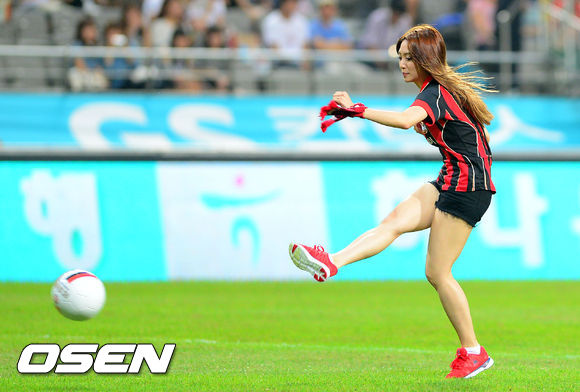 31일 오후 서울 상암동 서울월드컵경기장에서 열린 2013 K리그 클래식 FC서울과 제주 유나이티드의 경기에 앞서 걸그룹 리브하이가 시축을 하고 있다