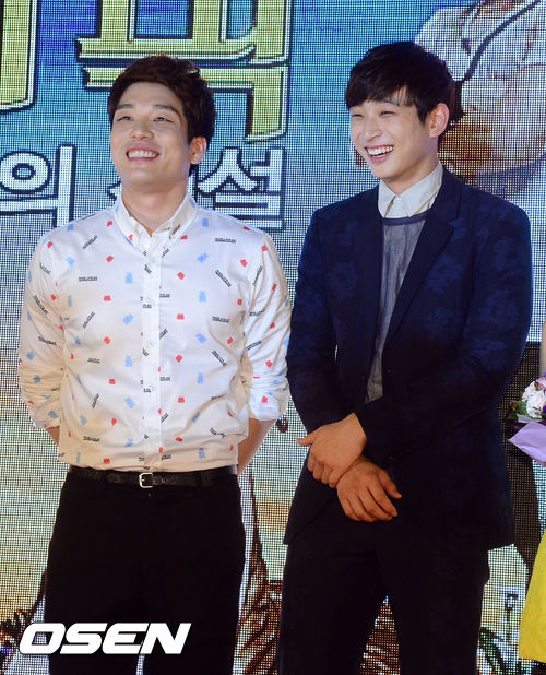 31일 오후 서울 왕십리 CGV에서 진행된 애니메이션 '에픽:숲속의 전설' 레드카펫에서 2AM 창민과 진운이 미소짓고 있다.