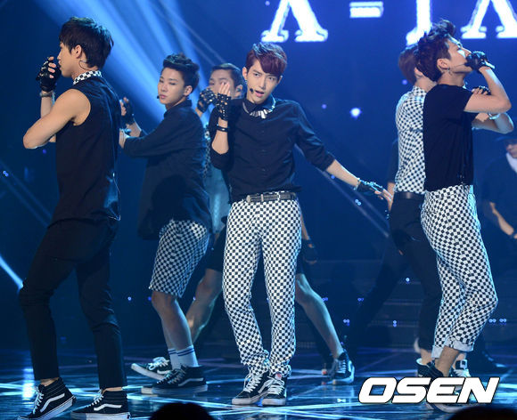 31일 오후 서울 광장동 유니클로 악스홀에서 진행된 MBC MUSIC '쇼 챔피언'에서 에이젝스가 공연을 펼치고 있다.