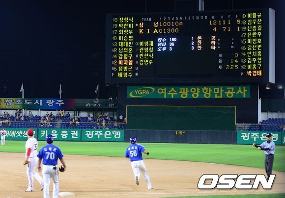 삼성은 31일 광주구장에서 벌어지고 있는 KIA와의 경기에 8회말 현재 12-4로 앞서고 있다. 3회까지 1-4로 끌려가던 삼성은 4회 채태인의 적시타로 한 점을 따라붙었다. 그리고 6회에는 무려 10득점을 올리며 단숨에 경기를 뒤집었다.