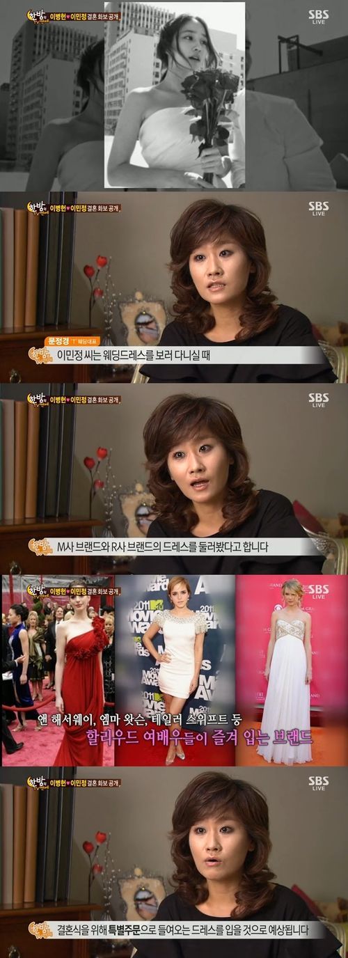 31일 방송된 SBS ‘한밤의 TV연예’에서는 오는 8월 결혼하는 이민정과 이병헌의 웨딩화보와 이민정이 웨딩드레스를 특별주문 한다는 내용이 공개됐다.