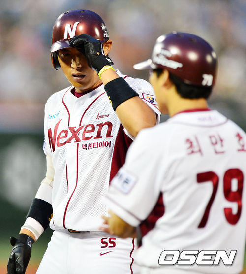넥센 안태영이 4회말 안타를 때린뒤 최만호 코치와 하이파이브를 하고 있다. / rumi@osen.co.kr
