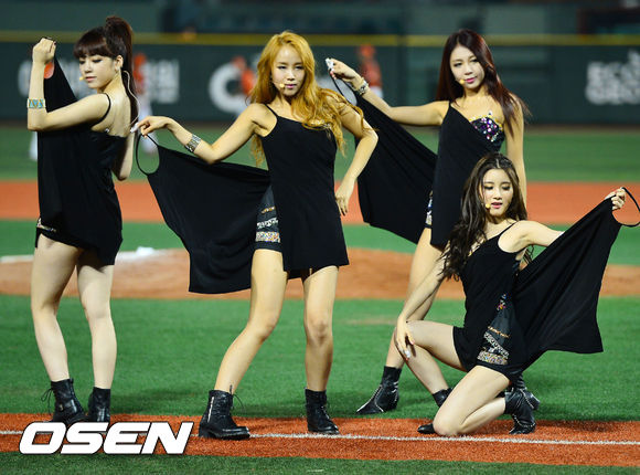 타히티가 클리닝 타임에 그라운드 위에서 축하무대를 펼치고 있다./ rumi@osen.co.kr