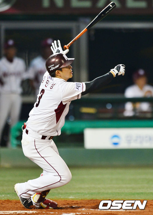 넥센 김민성이 6회말 한화 김혁민을 상대로 솔로 홈런을 날리고 있다. / rumi@osen.co.kr