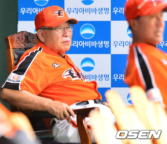 9회초 패색이 짙어지자 한화 김응용 감독이 덕아웃에서 아쉬운 표정을 짓고 있다 . / rumi@osen.co.kr