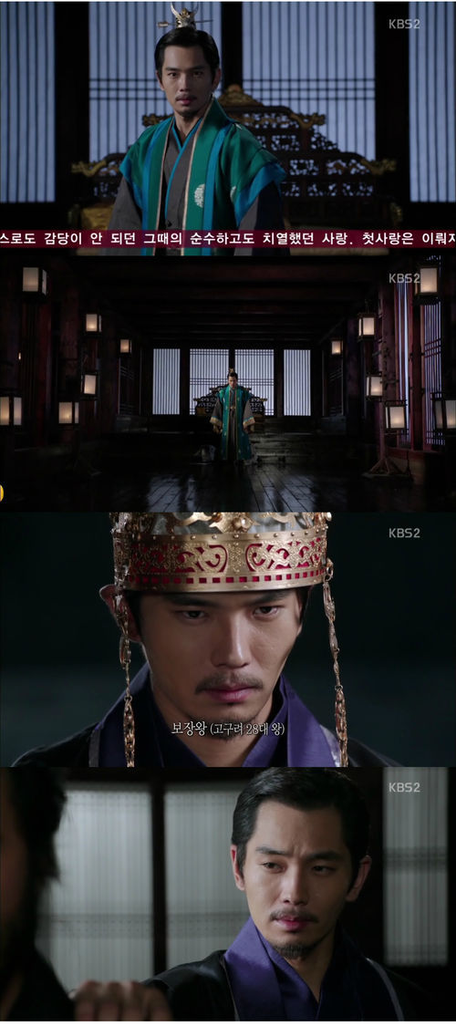 또한 장은 자신을 왕으로 인정하지 못하는 세력과 공주(김옥빈 분)의 생사 여부에 대해 불안해 하면서도 연개소문(최민수 분)에게 “그대와 같은 충신이 나를 믿고 따르니 이 얼마나 든든한 일이요?”라고 말했다. 이에 대답을 하지 않고 웃기만 하는 연개소문에게 지지 않으려는 듯이 “장군의 서자 아드님께서는 어찌하고 있습니까?”라고 비꼬며 앞으로 연개소문과의 신경전을 예상케 했다.